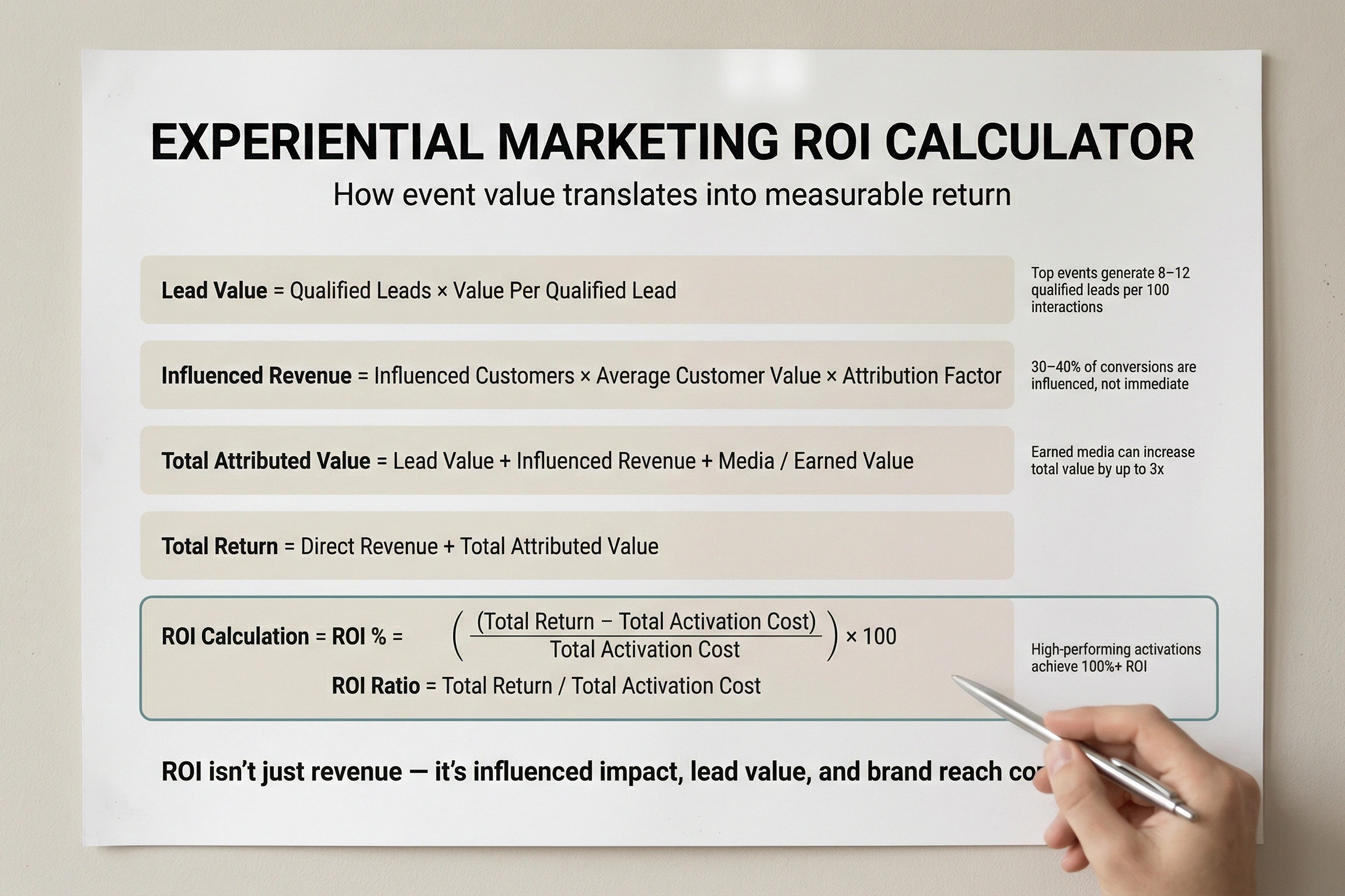 Experiential ROI = (Revenue + Attributed Value) / Total Activation Cost