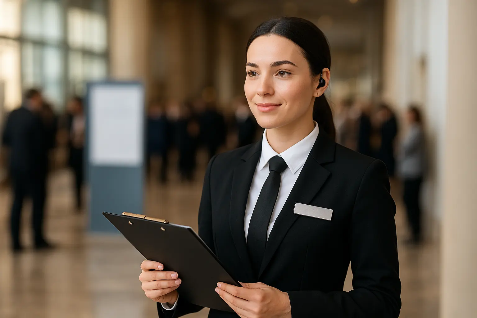Elite staffing emphasizes courtesy scripts, professional posture, radio etiquette, and conflict mitigation. These standards ensure compliant event staff who elevate guest experience, often utilizing professional event hostesses for high-touch areas.