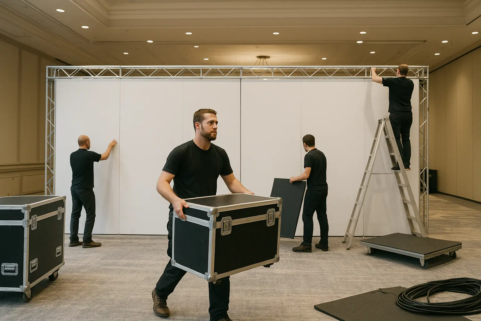 Experienced event setup staff understand venue logistics, dock schedules, fire lanes, and freight elevator sequencing.
