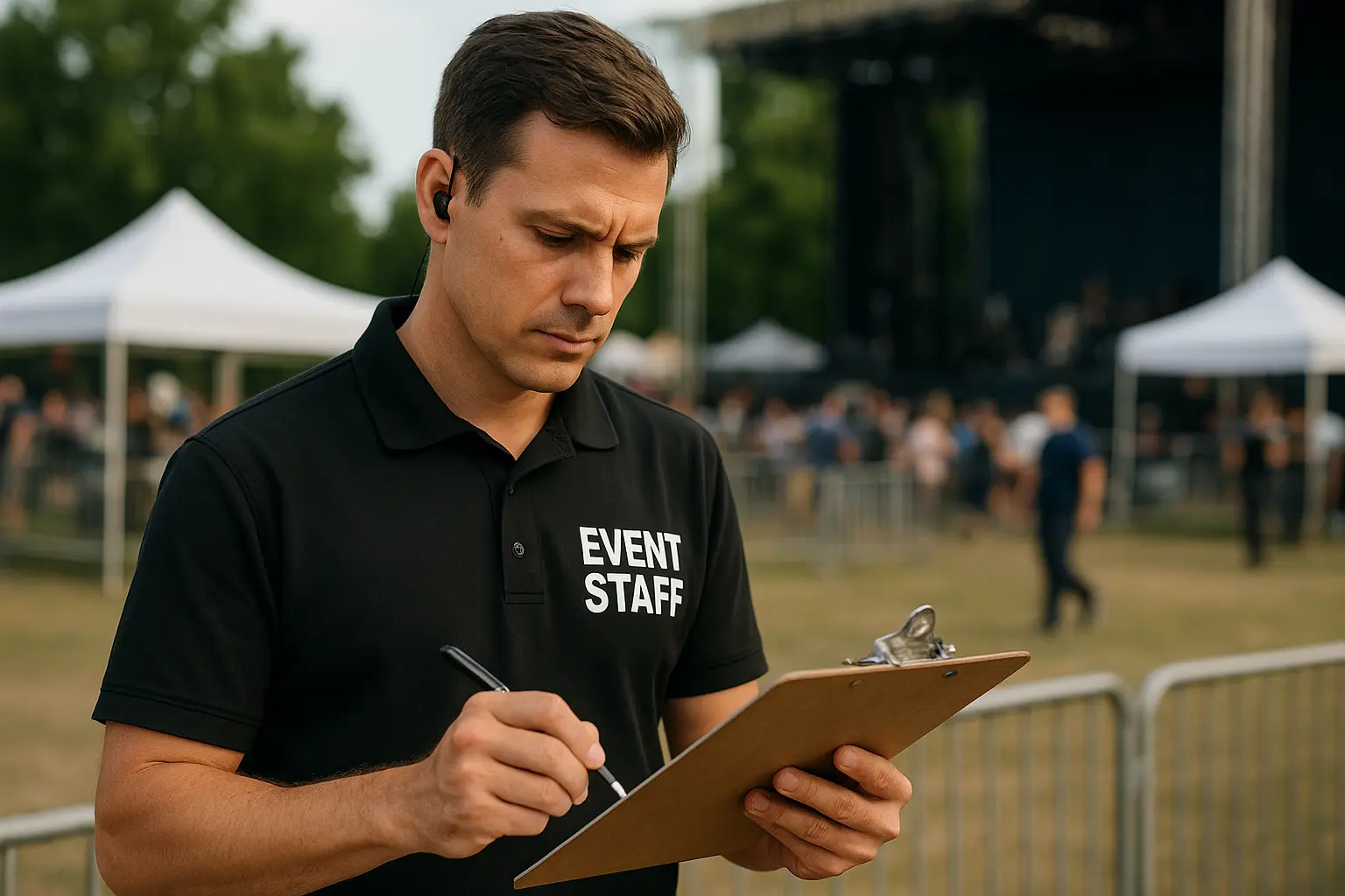 Even in crisis mode, certain functions must never be filled casually. Security, alcohol service, cash handling, and technical production require trained and insured professionals.