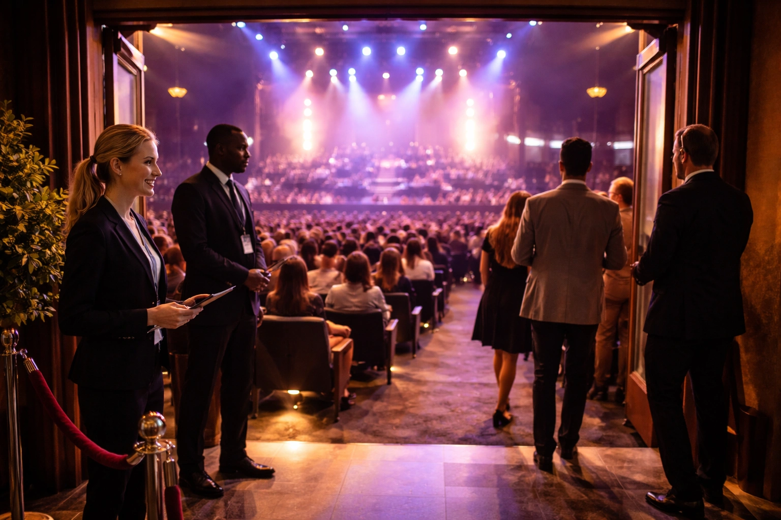 Ushers lead the in-room side of the operation, protecting section accuracy, row approach, aisle movement, and controlled release once guests are beyond the main arrival zone.